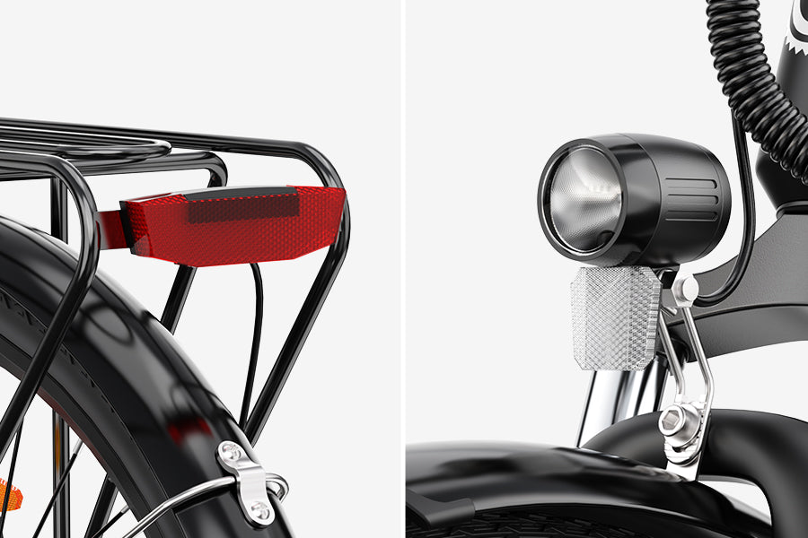 Equipped with a sturdy rear rack that has a maximum load capacity of 25KG. It is ideal for daily commuting grocery runs or carrying work essentials. Whether you are using a rear rack bag, a saddle bag or a rear bike basket, this rack can handle them easily. It adds everyday versatility and function to your ride.