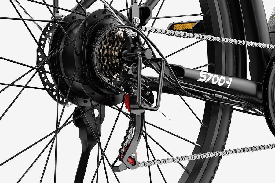 The Shimano 7-speed rear derailleur delivers reliable, precise, and effortless chain shifting across varying terrains and slopes, ensuring smooth gear transitions. Whether navigating urban streets, gentle hills, or suburban paths, it maintains consistent performance to keep your ride efficient and comfortable.