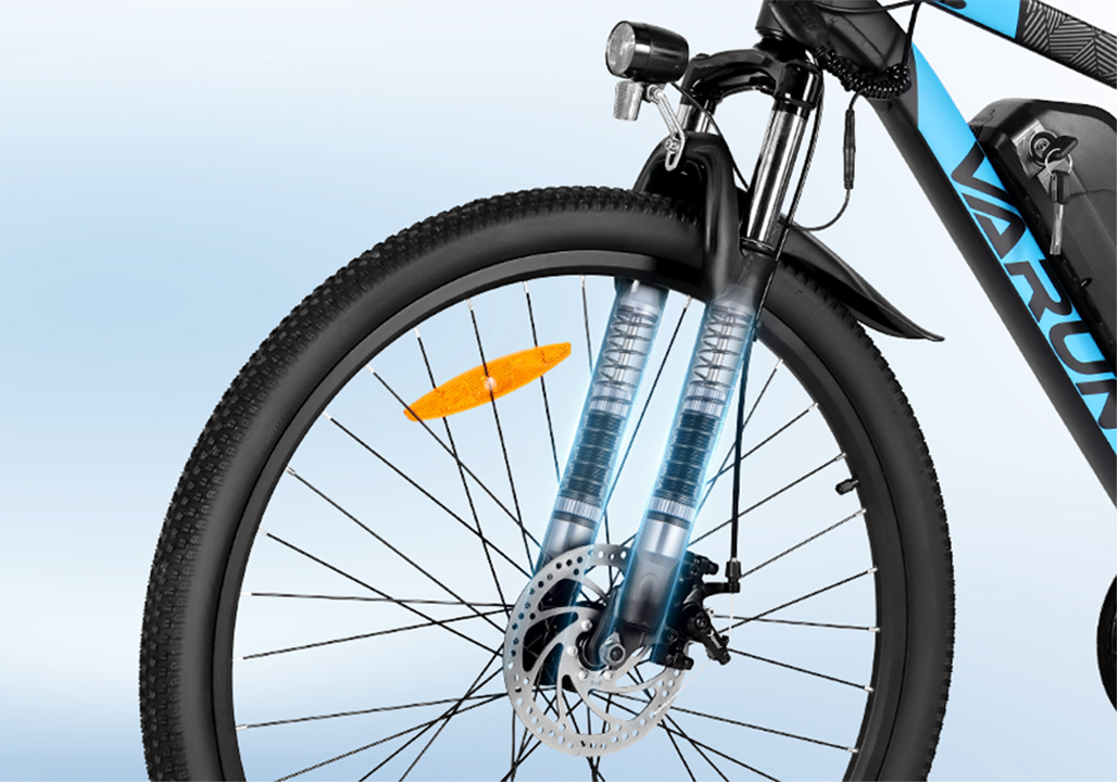 Tame the rough stuff with confidence. Our advanced front suspension fork absorbs bumps, cracks, and potholes, transforming rough terrain into a smooth, stable ride.