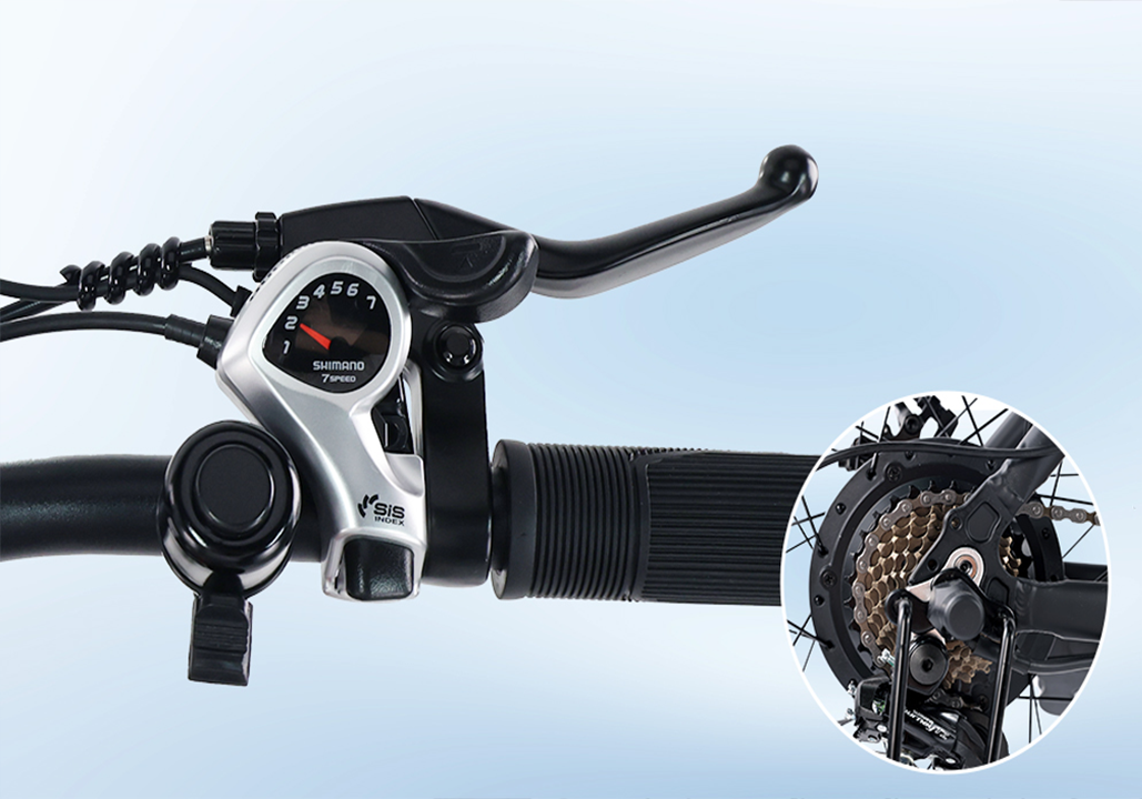 Take complete command of your ride with the professional Shimano 21-speed system (3 front, 7 rear gears). The multi-function thumb lever puts effortless shifting and quick pedal-assist changes right at your fingertips. Fine-tune your power for steep climbs or shift into high gear for smooth sprints—this intuitive control ensures optimal performance in all conditions.