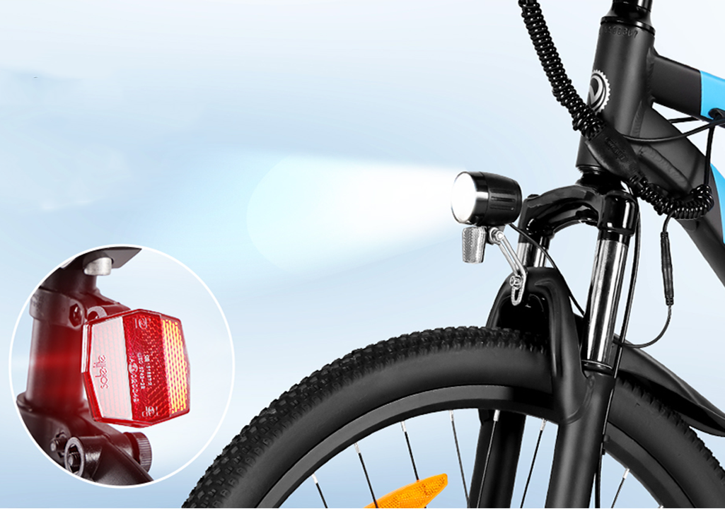 Equipped with a bright front headlight and a rear light for all-around safety. The headlight clearly illuminates your path after dark, while both lights work in unison to ensure you are highly visible to others, providing double protection for a secure ride in low-light conditions.