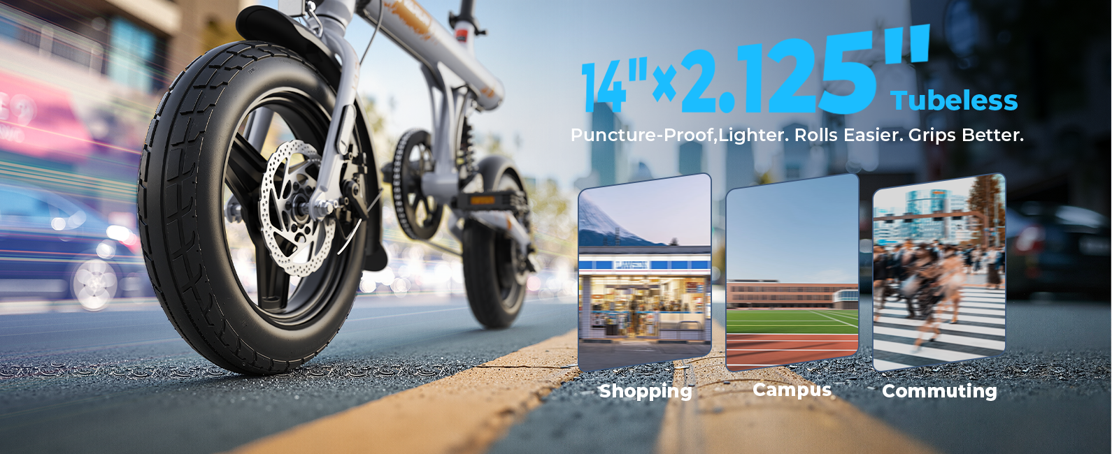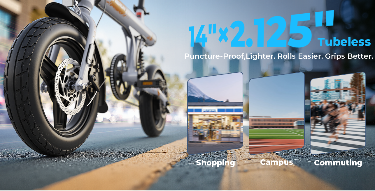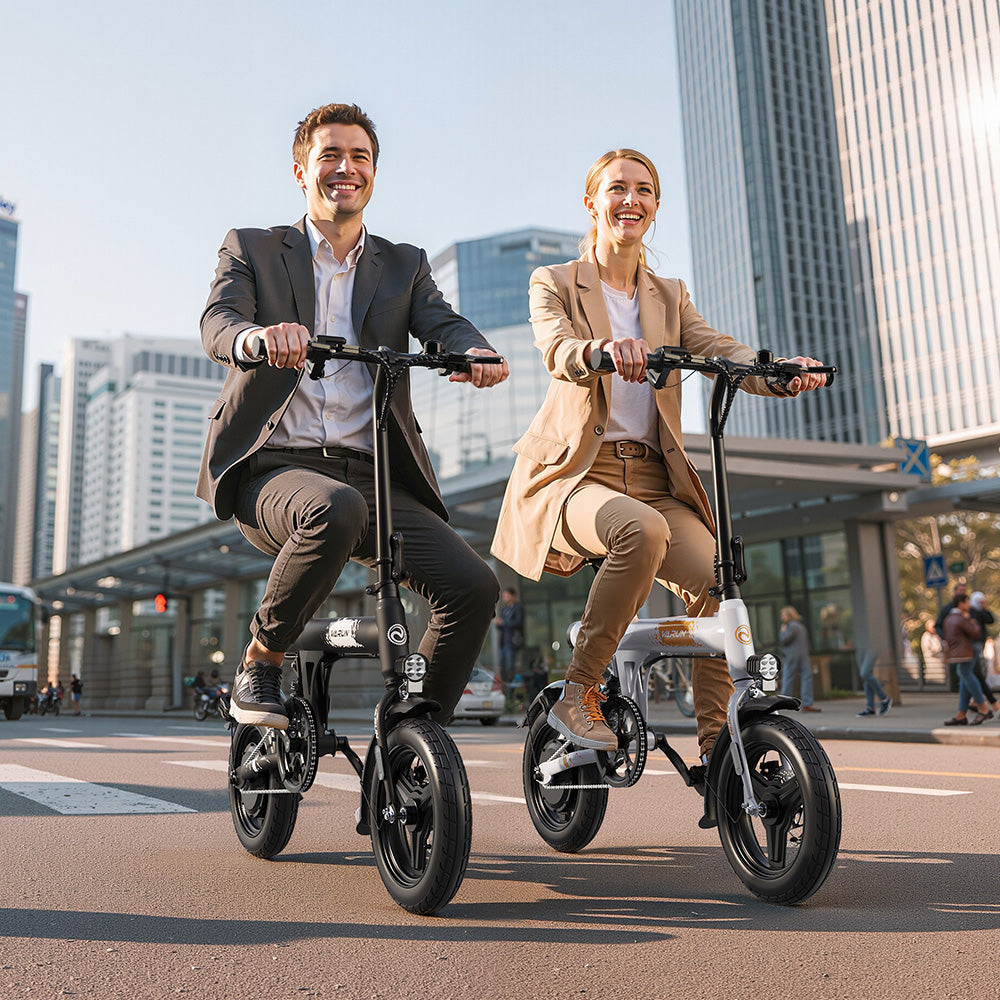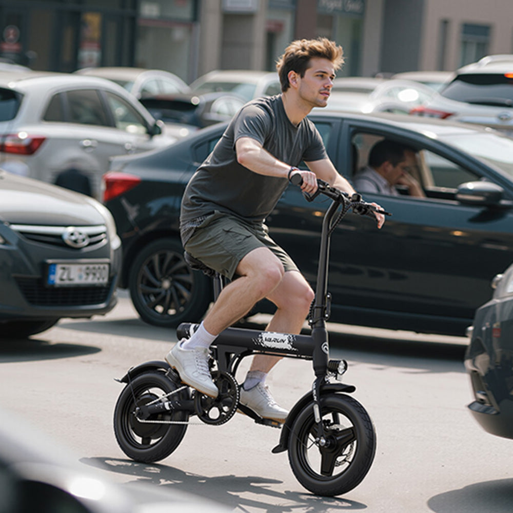 14" Folding E-Bike 36V 7.8Ah, Rear Shock Absorber, Integrated Wheels, Compact Ebike for Adults and Teens