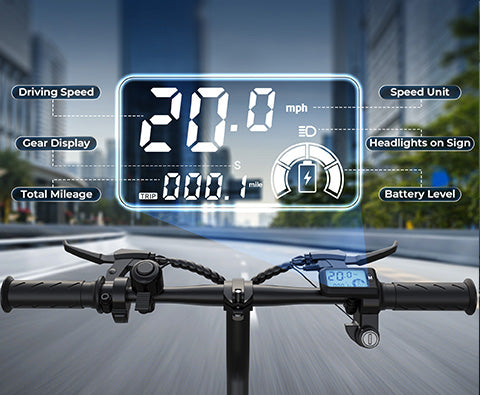 Glance down and see everything you need to know. The LCD display clearly shows your real-time speed, battery level, range, and assist level. It avoids guesswork and lets you fully focus on the joy of the ride.