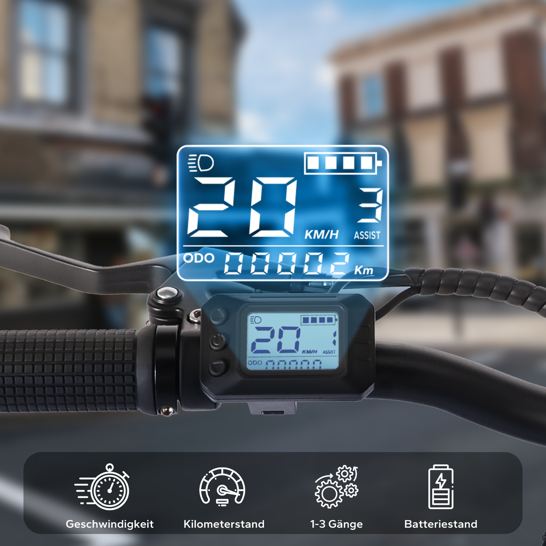 Clear speed, distance, gear & battery readouts on this smart display – ride with total control