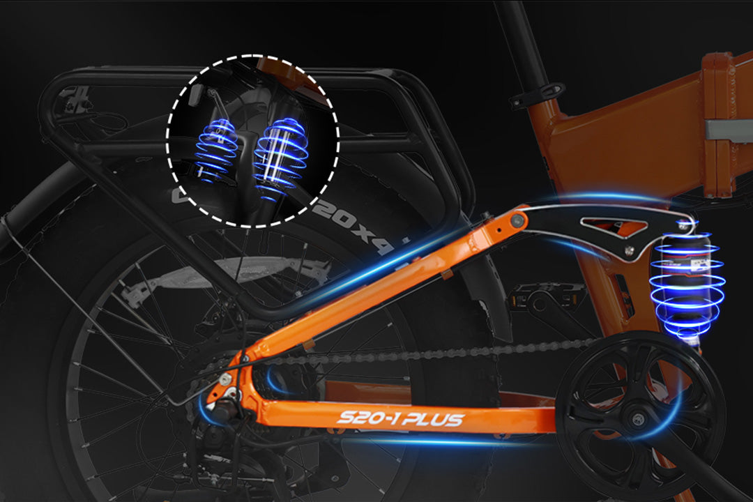 Compared with the S20-1, the S20-1 PLUS is equipped with dual shock absorbers and a four-fold drive spring suspension system. It features a complete mechanical shock absorption system at the front and middle parts, which can easily handle various rough terrains, effectively absorb vibrations caused by uneven road surfaces, and enhance riding comfort.