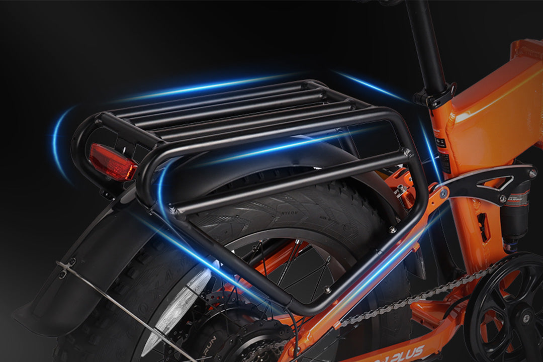The S20-1 PLUS is equipped with a load-bearing rear rack. The rear rack is extremely stable and can carry a maximum weight of 50 kilograms, making shopping convenient. Additionally, a child trailer can be mounted on the frame, which further facilitates travel.