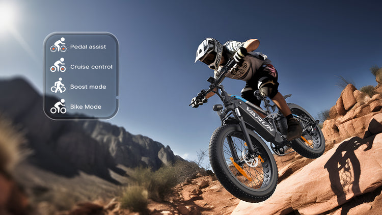 The all-terrain fat tires deliver exceptional grip and outstanding shock absorption. Coupled with their puncture-resistant design, they ensure a smooth and secure ride for your journey—whether you're navigating city streets, riding across sandy beaches, or traversing snowy terrain.