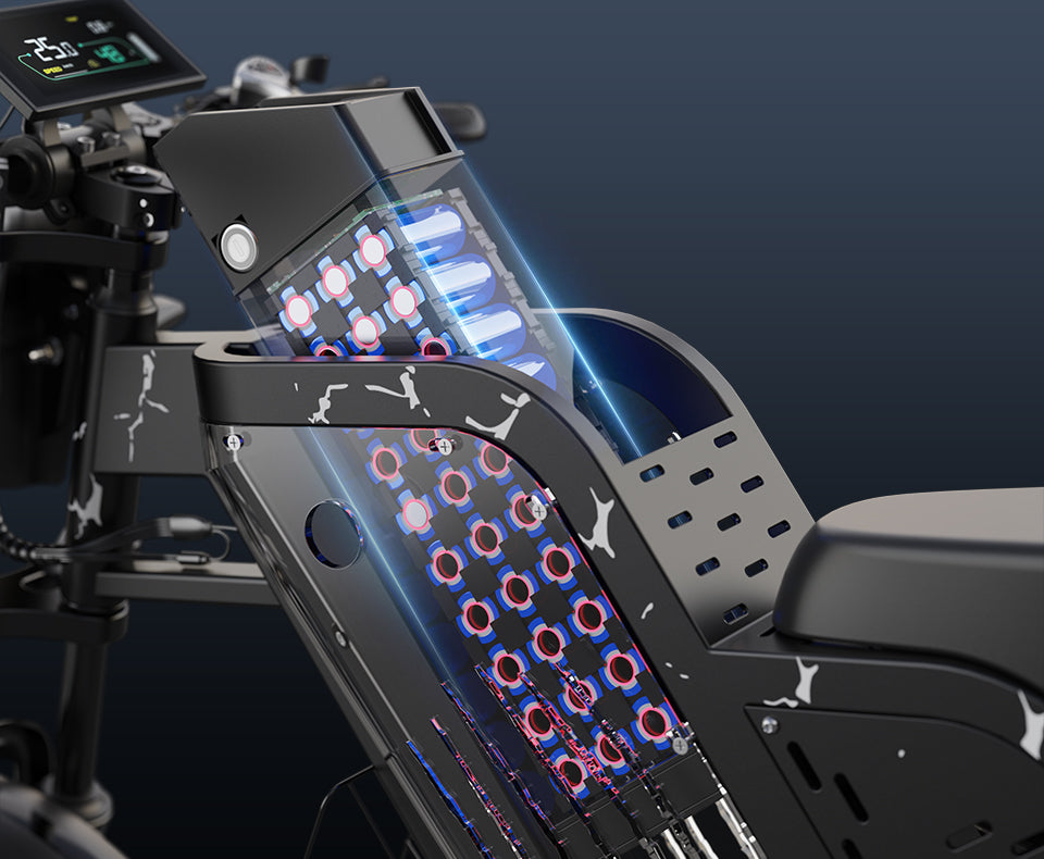 Powered by a massive 998.4Wh battery, this e-bike is engineered for extreme range—up to 130 km on a single charge. Built as the reliable core for long adventures and heavy-duty use, it features an IP65 waterproof rating, a built-in BMS for safety, and an integrated anti-theft mechanism for all-round protection and peace of mind.